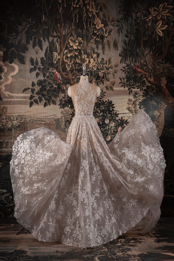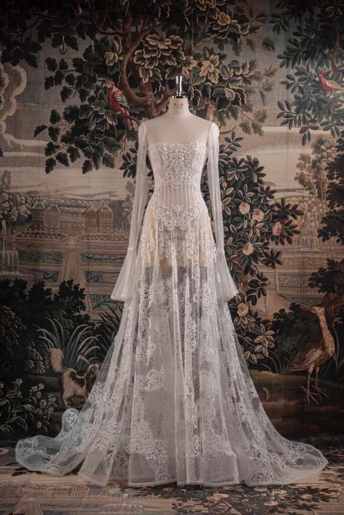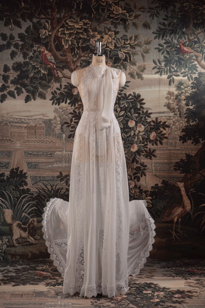 L’incontro tra il giovane stilista Andrea Sedici, l’estro creativo del pittore simbolo della Belle Epoque, Giovanni Boldini, rappresentato da donne misteriose, fasciate in voluttuosi tessuti e ammiccanti décolleté, e la precedente lunga collaborazione con Re Giorgio Armani, sono i solidi pilastri sui quali questa magnifica collezione si erge, tra sete, taffetà, satin, pizzi macramè, sovrapposizioni di passamanerie, trasparenze e innovative lavorazioni sartoriali.
